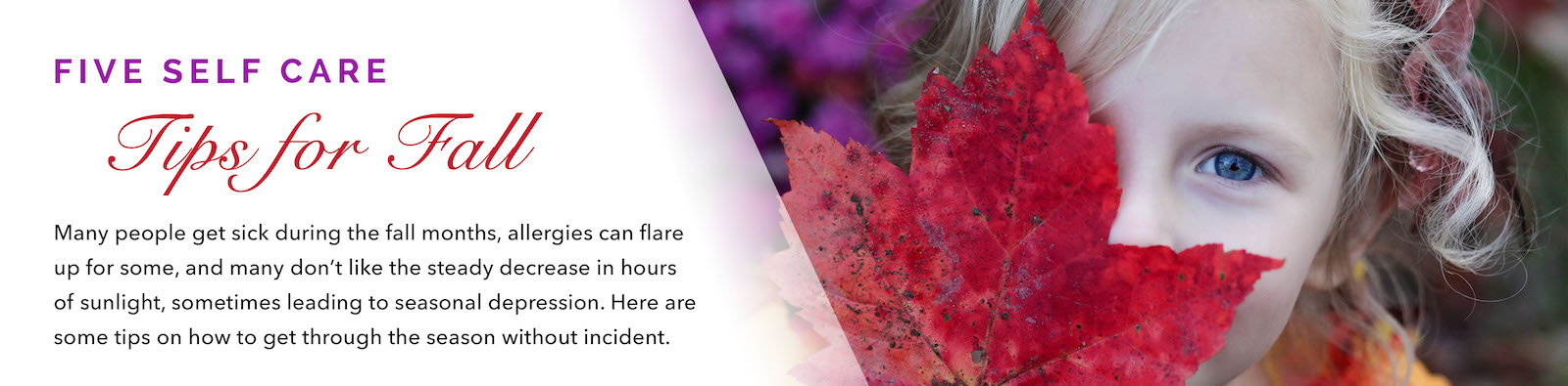 Fall is a favorite season for many people. The weather starts getting a little cooler, things are beginning to slow down and preparations for the holidays are in full swing. For many others, fall is not so festive. Many people get sick during the fall months, allergies can flare up for some, and many don’t like the steady decrease in hours of sunlight, sometimes leading to seasonal depression. Here are some tips on how to get through the season without incident.